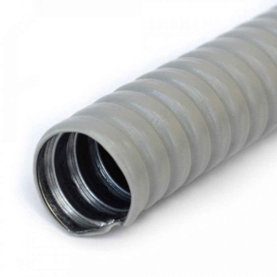 Металлорукав в ПВХ изоляции Р3-ЦП нг 50 (20 м/уп.) серый предназначен для защиты проводов и кабелей от механических повреждений и воздействия внешней среды.