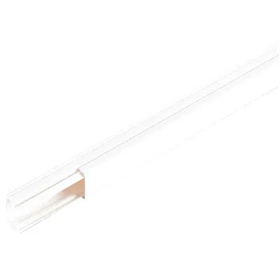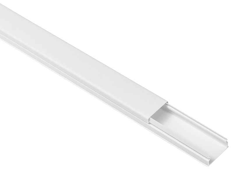 Представляет собой канал для настенного или потолочного монтажа электропроводки. Изготовлен из пластика, белого цвета. Верхняя часть поставляется совместно с продуктом.