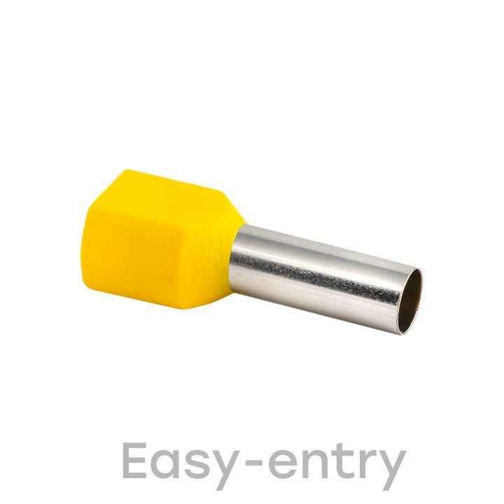 Для удобного подключения к клеммам проводов используются втулочные и штыревые изолированные наконечники. Они надеваются на зачищенные концы проводов и опрессовываются. Правильно подобранные наконечники позволяют подсоединять провода к клеммам, рассчитанным на другие сечения. Кроме того, с помощью двойных втулочных наконечников к одной клемме можно подключить одновременно два провода.Использование наконечников обеспечивает более надежное подключение, но необходимо аккуратно фиксировать их в клемме. Чрезмерное усилие при затягивании винта может повредить наконечник. В свою очередь, плохо закрепленный наконечник не обеспечит нужный контакт. Для того чтобы затянуть винт с нужной силой (1,5–2,5 Нм), можно применить динамометрическую отвертку.