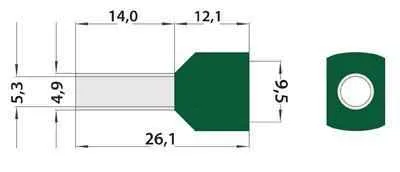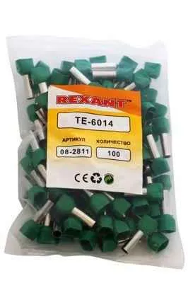 Наконечник штыревой втулочный изолированный (НШВИ F-14 мм) 2х6 кв.мм зеленый REхANT предназначен для создания быстрого и качественного подключения различного электрооборудования и монтажа электросетей. Такой современный способ подготовки кабеля к соединению заменяет процесс облуживания или скрутки многожильных медных проводов, формируя целостное окончание кабеля с последующим подключением промышленного или бытового электрооборудования.