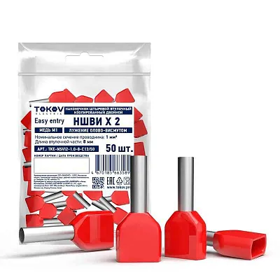Наконечник штыревой втулочный изолированный двойн. НШВИ(2) 1.0-8 TOKOV ELECTRIC TKE-NSVI2-1.0-8-C13/50