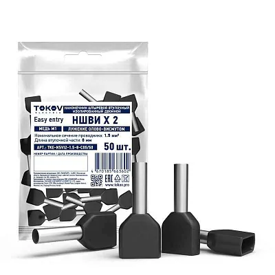 Наконечник штыревой втулочный изолированный двойн. НШВИ(2) 1.5-8 TOKOV ELECTRIC TKE-NSVI2-1.5-8-C05/50