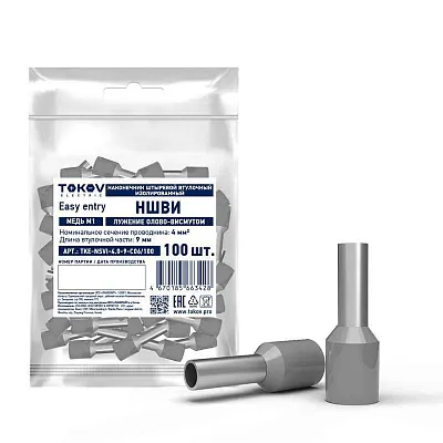 Наконечник штыревой втулочный изолированный НШВИ 4.0-9 TOKOV ELECTRIC TKE-NSVI-4.0-9-C06/100