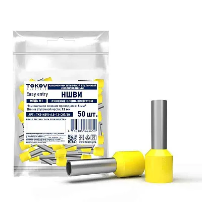 Наконечник штыревой втулочный изолированный НШВИ 6.0-12 TOKOV ELECTRIC TKE-NSVI-6.0-12-C07/50