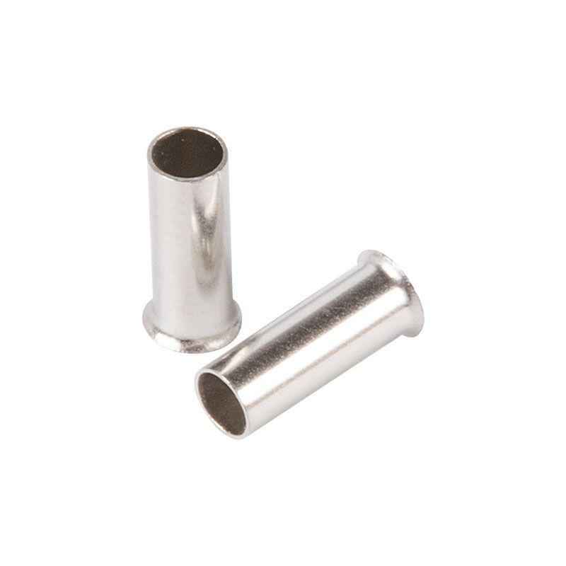 Втулочный наконечник состоит из латуни, с поверхностным электролитическим лужением, и рассчитан на монтаж одного проводника с соответствующим сечением под опрессовку. Предварительно зачищенная жила заводится внутрь латунной втулки и обжимается специальными пресс-клещами (ht-864 арт.12-3202, 12-3202-4; ht-866 арт.12-3205; ht8 6-4 арт.12-3106; ht-301E арт.12-3113, 12-3114, 12-3013) в считанные секунды. Для удобства заведения многожильного провода внутрь латунной втулки, одна ее сторона развальцована.
