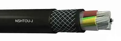 Оболочка кабеля изготовлена из смеси резины и полихлоропрена (Neoprene), которая обеспечивает стойкость к маслу, износу, ударам и ряду химических веществ. Кабель имеет пять жил с сечением 2,5 мм², что позволяет передавать достаточное количество электроэнергии в механизмах средней мощности. Диапазон рабочих температур кабеля NSHTOU-JB 5X2.5 варьируется от -25°C до +60°C при стационарной укладке и от -5°C до +60°C при подвижном использовании.