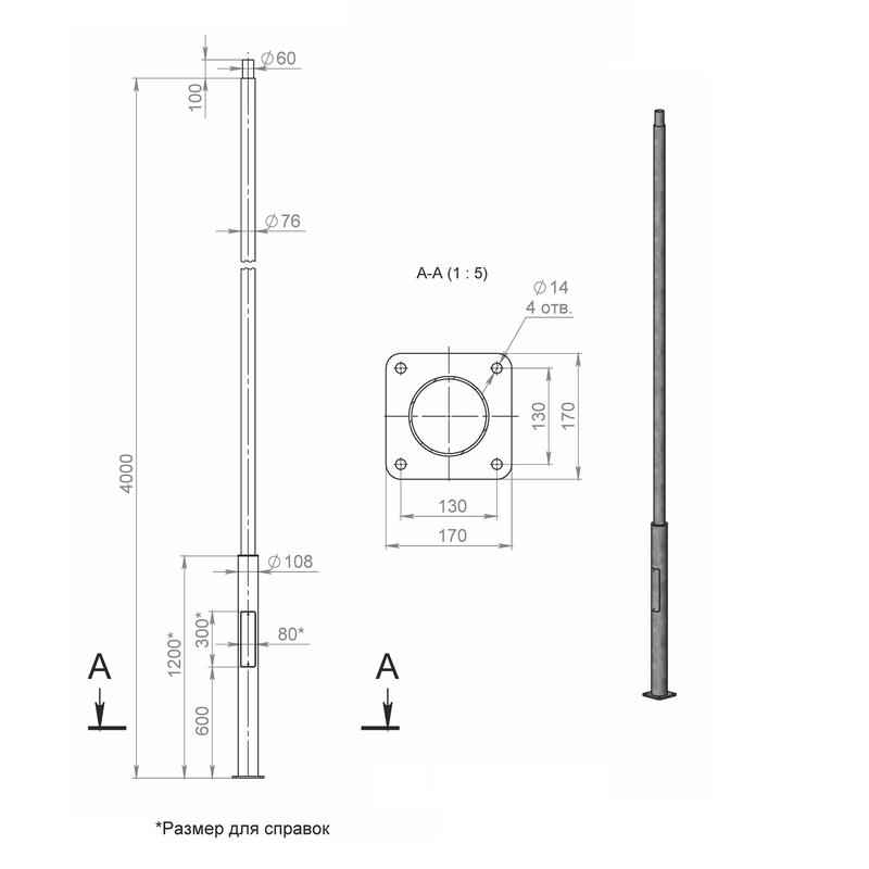 Опора ОП1ф-4.0-108/76/т60-(К170-130-4х14)-по 9005 муар Пересвет В00007136