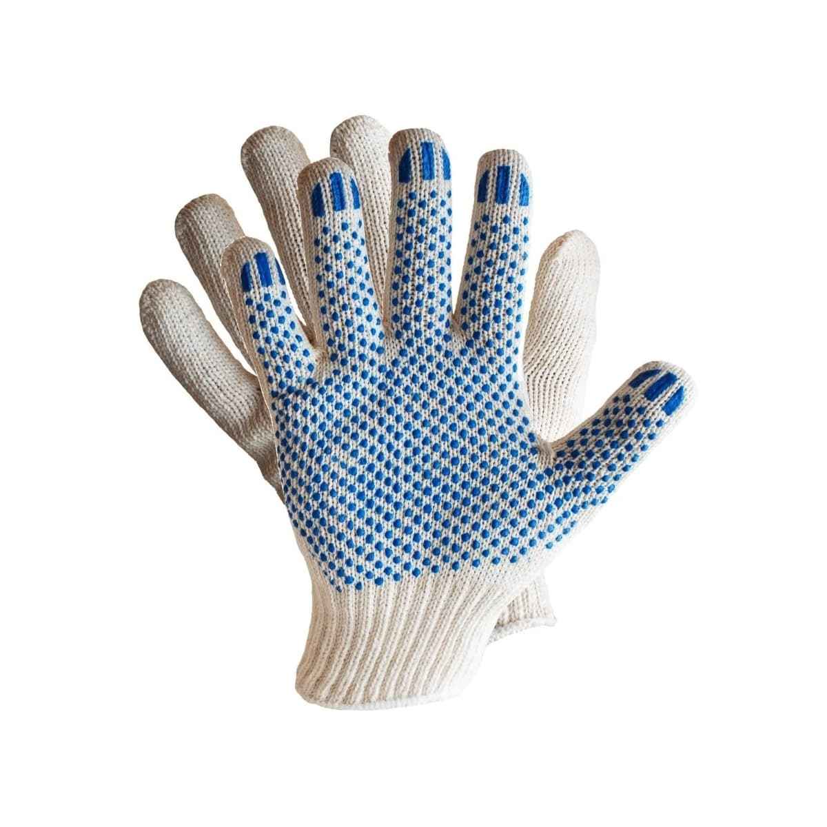 Изготовлены из хлопчатобумажной пряжи с добавлением полиэфирного волокна. Плотная вязка обеспечивает наилучшую защиту рук от загрязнений. ПВХ напыление на ладони и пальцах обеспечивают антискользящий эффект, сохраняет чувствительность руки, а также препятствует быстрому истиранию перчаток. Отлично подходят для строительных, ремонтных и погрузочно-разгрузочных работ.