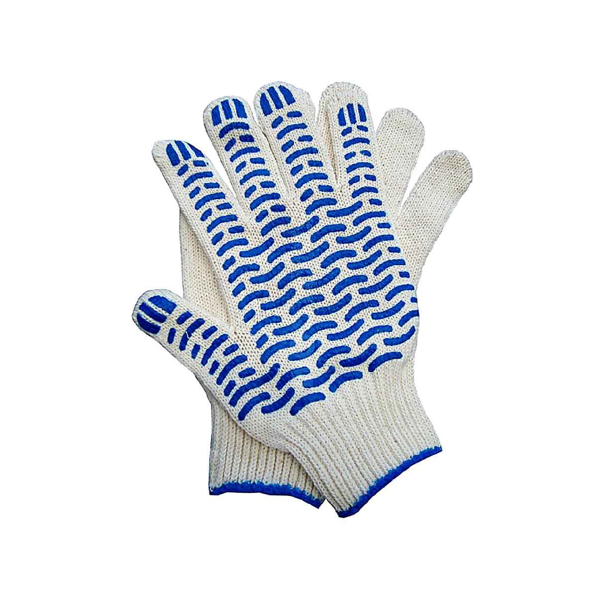 Изготовлены из хлопчатобумажной пряжи с добавлением полиэфирного волокна. Плотная вязка обеспечивает наилучшую защиту рук от загрязнений. ПВХ напыление на ладони и пальцах обеспечивают антискользящий эффект, сохраняет чувствительность руки, а также препятствует быстрому истиранию перчаток. Отлично подходят для строительных, ремонтных и погрузочно-разгрузочных работ.