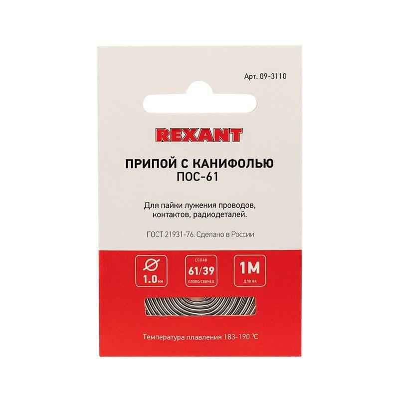 Припой с канифолью ПОС-61 d1.0 мм спираль 1 метр REXANT предназначен для создания механически прочного и герметичного соединения деталей между собой или для их фиксирования на плате (пайка и лужение радиоэлектронных приборов, медицинской аппаратуры, автодеталей, печатных плат, электроаппаратуры и т.д.).