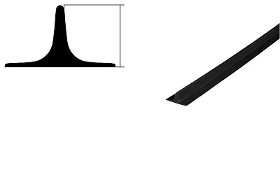 Профиль резиновый используют для установки на ленты в качестве перегородок. Поперечные ребра выполняют роль толкателей, которые служат препятствием для скатывания груза вниз при транспортировке сыпучих материалов на высоту, под углом наклона от 45 до 90 градусов.