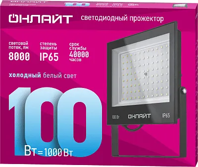 Прожектор светодиодный 61 948 OFL-100-6K-BL-IP65-LED 100Вт 6000К IP65 8000лм черн. ОНЛАЙТ 61948