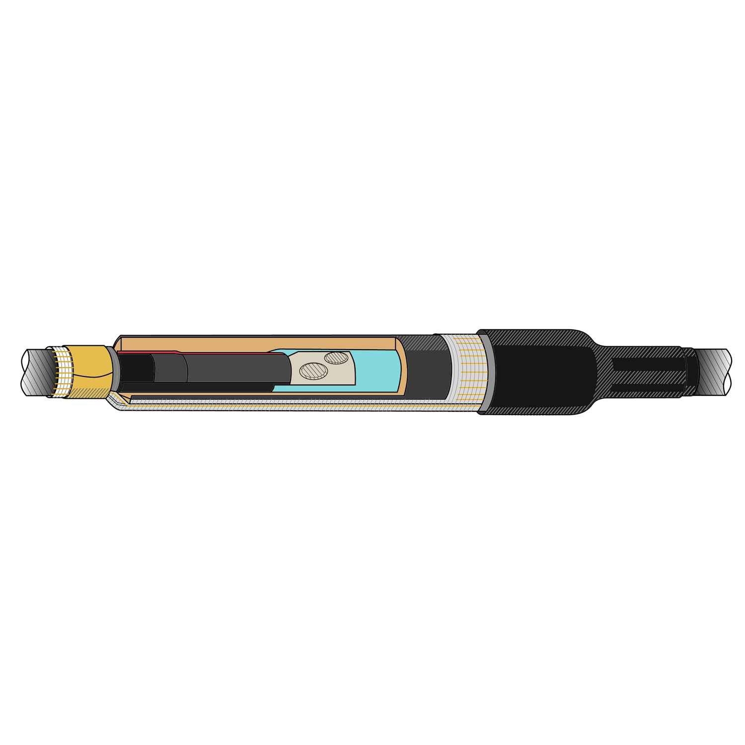 Муфта термоусаживаемая соединительная для одножильного кабеля с СПЭ-изоляцией, на напряжение до 10 кВ включительно ПСТ(с)-О-10-300...400