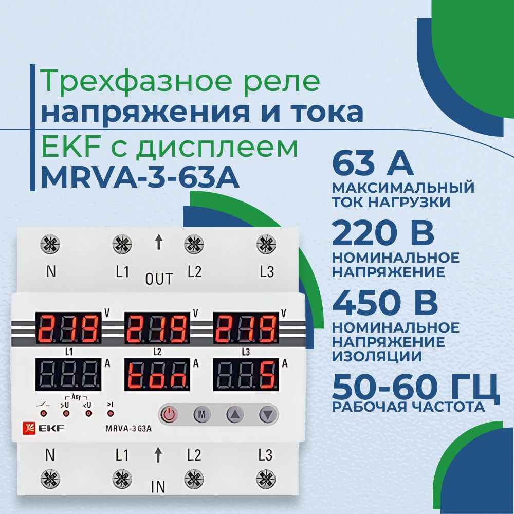Реле напряжения и тока MRVA 63A треxф. С дисп. EKF купить в Москве - цена от 6 648.62 ₽ | Гамма-компоненты