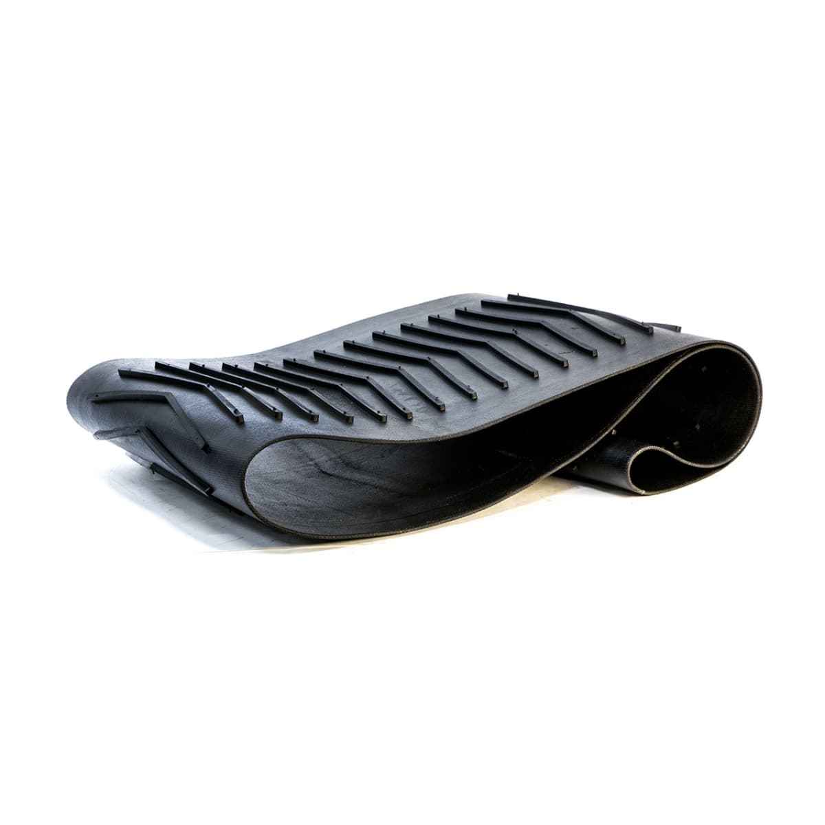Эффективность ремня с поперечными планками превышает аналоги гладких бесконечных ремней, это преимущество достигается наличием рёбер, толкающих и поддерживающих транспортируемый материал, кроме того ремень с планками позволяет увеличивать угол наклона транспортера у зернометателя.