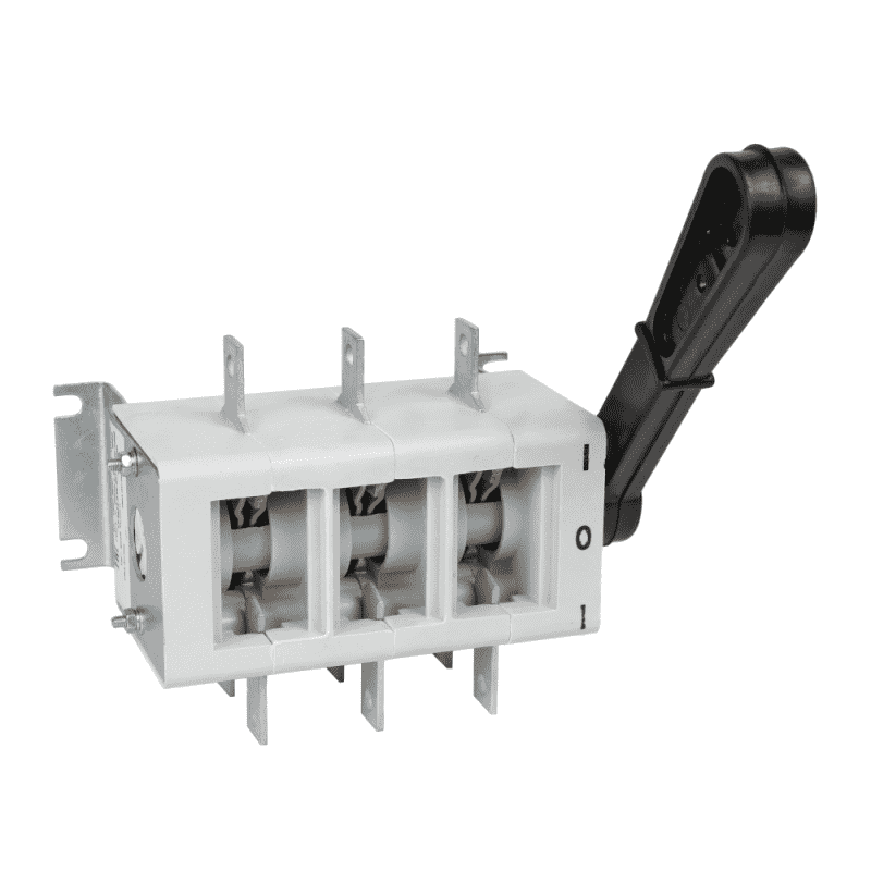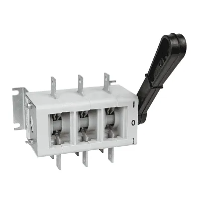 Выключатель-разъединитель 3 полюсный на номинальный ток 250 А, в котором установлена несъемная рукоятка.