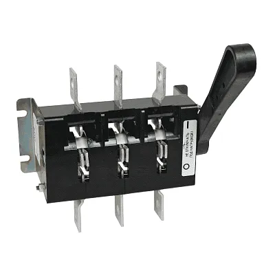 Выключатель-разъединитель 3 полюсный на номинальный ток 250 А, в котором установлена несъемная рукоятка.