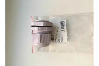 Сальник PG 21 из пластика, предназначенный для защиты соединений проводов и кабелей от влаги и пыли, соответствует стандарту IP68.