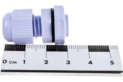 Сальник PG 7 из пластика, предназначенный для защиты соединений проводов от влаги и пыли, имеет степень защиты IP68 и подходит для кабелей диаметром от 3 до 6,5 мм.