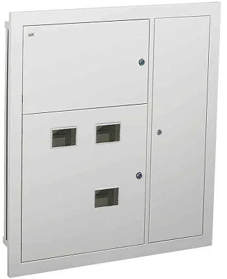 Сварной металлический корпус состоит из трех отсеков: вводно-учетного, распределительного, отсека слаботочного оборудования. В вводно-учетном и распределительном отсеках размещены DIN-рейки для крепления счетчиков (по количеству квартир). В распределительном отсеке установлены DIN-рейки для аппаратов групповых линий и рейка для установки шин N и РЕ. Отсек укомплектован оперативной панелью. Отсек слаботочного оборудования снабжен перфорированными профилями для прокладки теле- и радиосетей, телефонных линий, сетей охранной сигнализации, домофонов и т.п. Для обеспечения пожарной безопасности между слаботочным и силовым отсеками расположена разделительная перегородка.