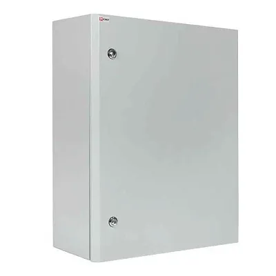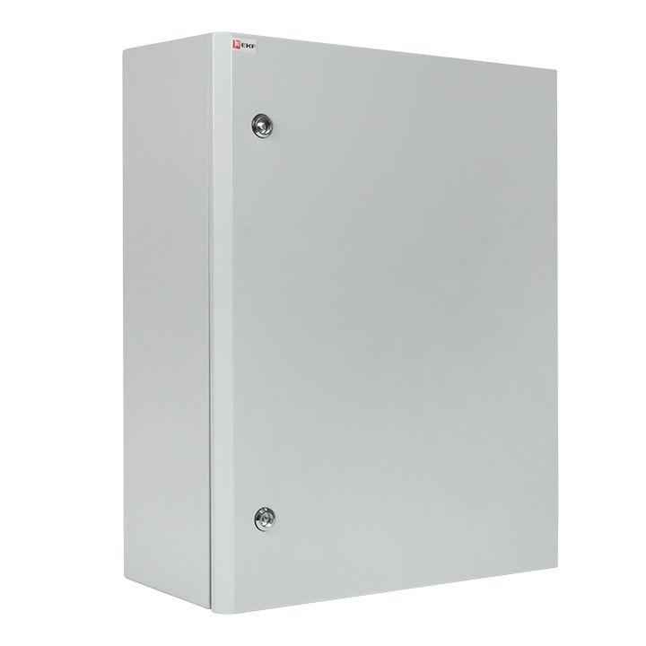 Навесной, с дверцей и замком. Предусмотрена монтажная панель. Изготовлен из стали, покраска серого цвета. Размеры: 650 х 500 х 220 мм. Защищен от проникновения пыли и влаги (IP54).