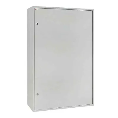 Навесной, с дверцей и замком. Предусмотрена монтажная панель. Изготовлен из стали, покраска серого цвета. Размеры: 800 х 600 х 250 мм. Защищен от проникновения пыли и влаги (IP31).