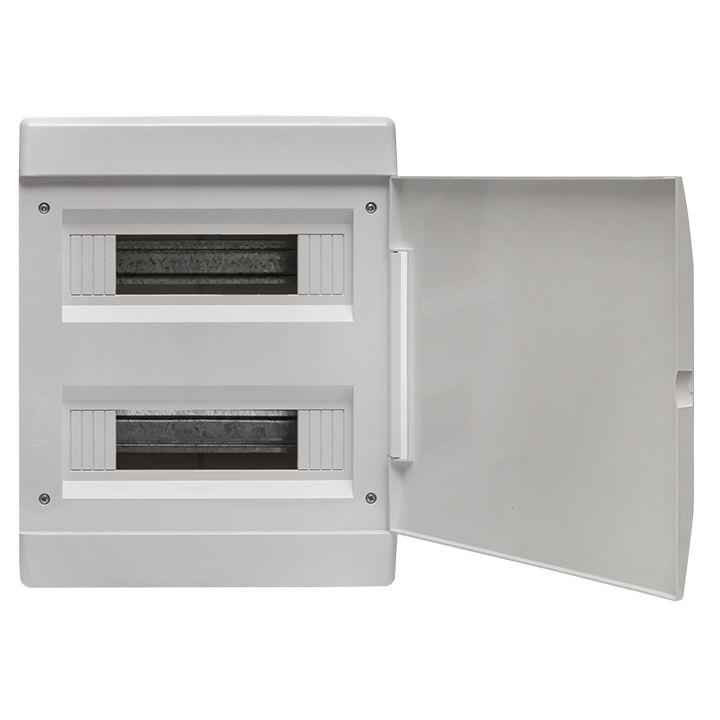 Щиты распределительные пластиковые предназначены для установки модульной аппаратуры: автоматических выключателей, УЗО, таймеров, счетчиков электрической энергии и т. д. Используются для электромонтажа в жилых, административных, торговых помещениях. Щиты изготовлены из прочного ABS-пластика теплого белого цвета. Имеют полноразмерную затемненную дверцу, что позволяет им эстетично вписаться в интерьер жилых и офисно-торговых помещений. Основание корпуса у навесных щитов имеет малую высоту, что делает сборку щита и подключение проводов более удобным за счет большего свободного пространства для сборщика. Щиты отгружаются кратно транспортным коробкам. Индивидуальная упаковка – пакет с наклейкой и штрихкодом.