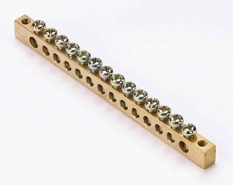 Шина нулевая серии ШН-102 DEKraft; исполнение – колодка на 14 зажимов; сечение - 6х9 мм; длина – 115 мм; максимальный ток – 100 А; материал – высококачественная электротехническая бронза; крепёж - по центру; кол-во в упаковке – 10 шт. Нулевая шина позволяет создать сразу несколько точек подключения нагрузок от общего ввода к нулевому проводнику, обеспечить неразрывность цепи на участке от заземления до конкретной нагрузки, а также выполнить разделение защитного и рабочего нулевых проводников.