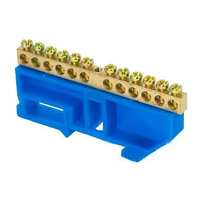 Шина нулевая N 8х12 12 отверстий синий изолятор на DIN-рейку латунь розн. стикер PROxima EKF sn0-125-12-d-r