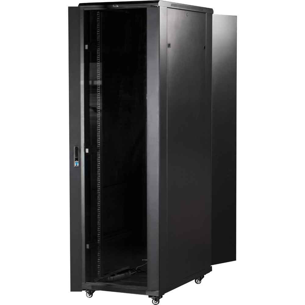 Шкаф 19" Business, 42U 600x800, черный, передняя дверь стекло, задняя дверь распашная металл