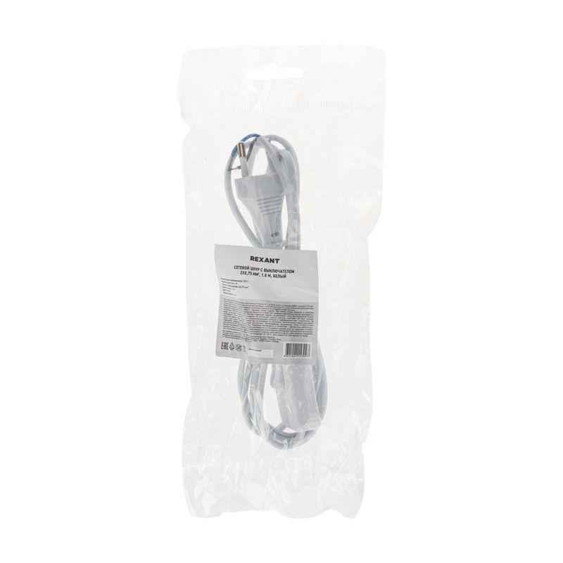 Шнур сетевой 1.8м с выключателем ШВВП 2х0.75 бел. Rexant 11-1133