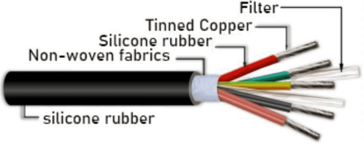 - Наружная оболочка: силиконовая, устойчива к воздействию высоких и низких температур