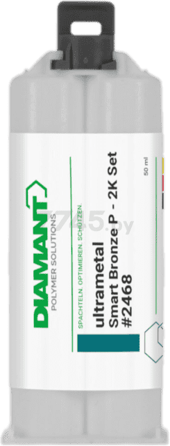 DIAMANT POLYMER 2468 Bronze Smart P (артикул dia.2468.500) — двухкомпонентный полимерный материал для ремонта и восстановления металлов. Состав без растворителей, обладает высокой химической стойкостью и не подвержен коррозии, не содержит бисфенол А. Поставляется в картриджах.