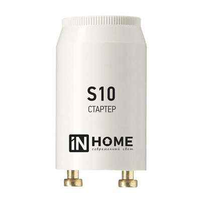 Стартер S10 производства компании INhome – это низковольтный аппарат, применяемый совместно с дросселем (балластом). Служит для включения ламп мощностью 4 - 65 Вт люминесцентного типа, подключаемых последовательно к сети переменного тока 230В и частотой 50Гц. Модель тлеющего разряда S10 применяется со светильниками общего, либо специального назначения – посадочный размер всех стартеров является унифицированным и подходит к любым типам люминесцентных светильников. Замену стартера рекомендуем производить одновременно с заменой лампы.