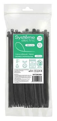 Стяжка кабельная 200х3.6 черн. (уп.100шт) SE IMT20036B