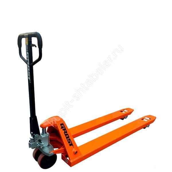 Гидравлическая тележка GROST GT3000 предназначена для перемещения грузов на поддонах в складских и производственных помещениях. Грузоподъемность 3000 кг, высота подъёма 200 мм, хромированный шток, усиленная рама, полиамидные колёса с металлическим ободом.