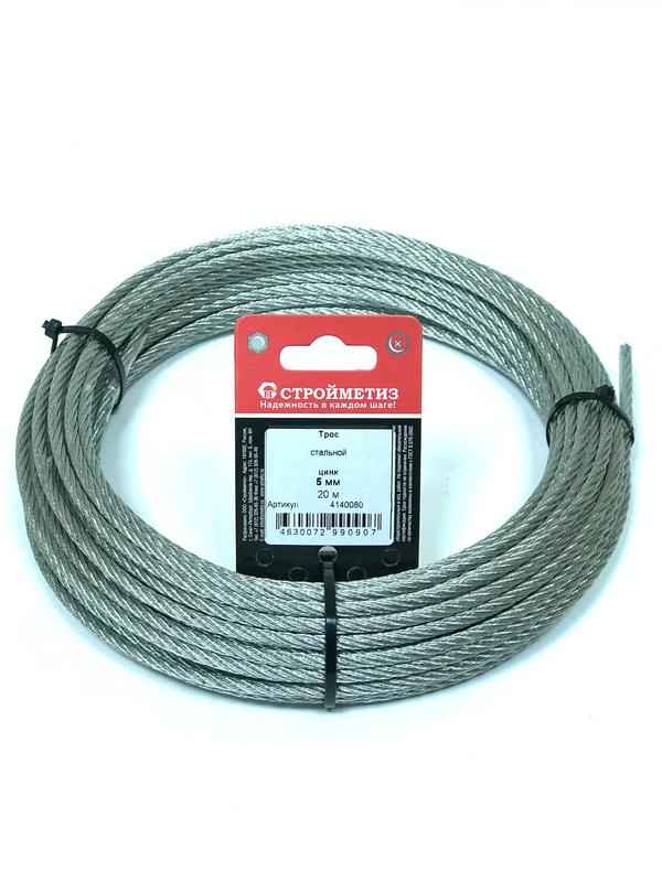 Трос стальной 5.0мм DIN 3055 цинк (уп.20м) подвес СТРОЙМЕТИЗ 4140080