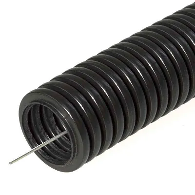 Труба гофрированная ПНД d25мм с протяжкой безгалоген. (HF) черн. (уп.50м) Строитель PR.022551