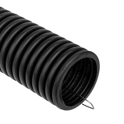 Труба гофрированная ПНД d40мм с протяжкой черн. (уп.15м) Rexant 28-0040-3