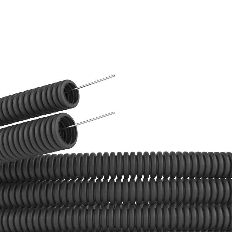 Труба гофрированная ПНД гибкая легкая d25мм с протяжкой черн. (уп.50м) DKC 71725