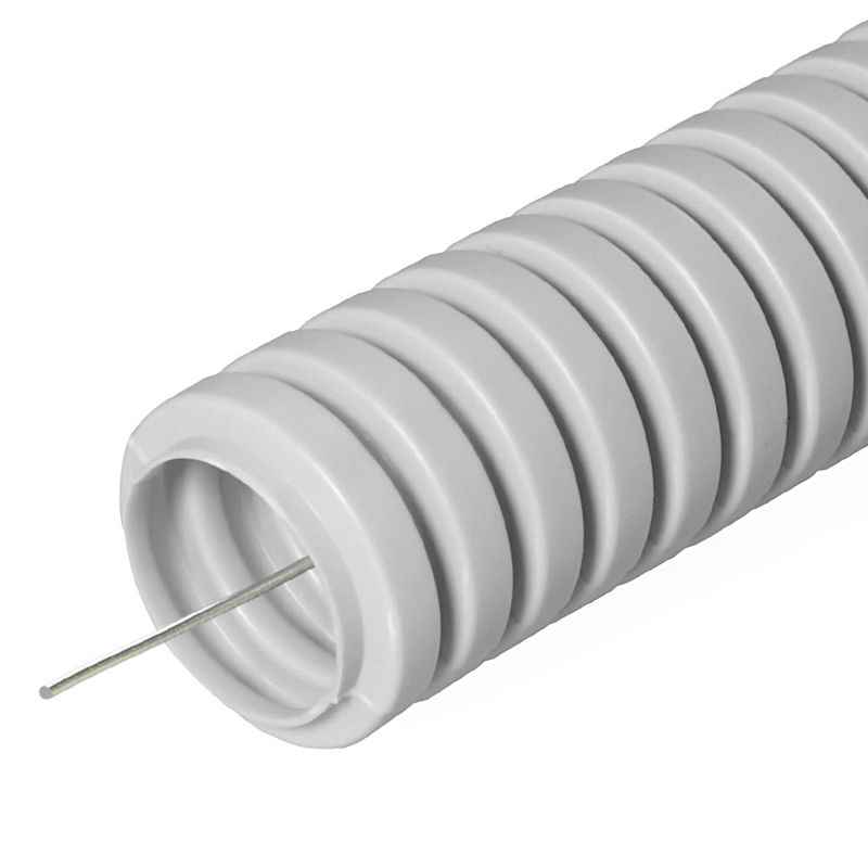 Труба гофрированная ПВХ d32мм с протяжкой сер. (уп.25м) Строитель PR.033225