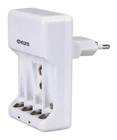 Одновременный заряд 2-х или 4-х аккумуляторов размера АА/ААА (ток заряда 120мА). Возможность заряда аккумулятора типа Крона 9В (ток заряда 35мА). Складная вилка. Блистер.
