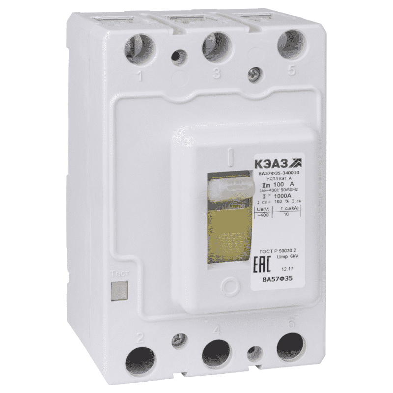 Силовой 3 полюсный автоматический выключатель переменного тока в литом корпусе на номинальный ток 25 А.