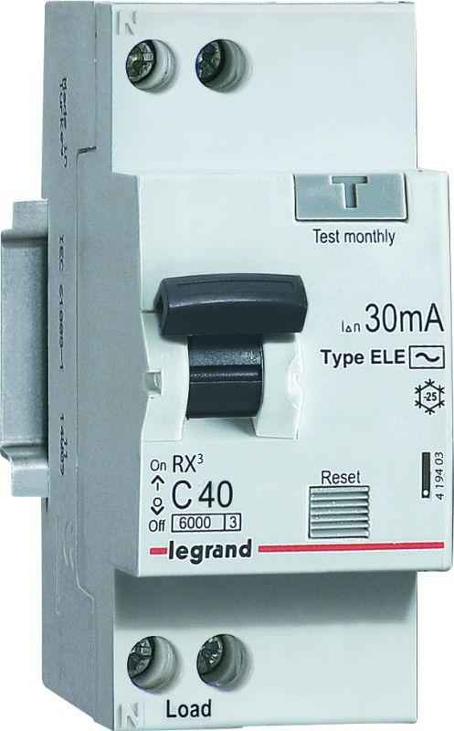 • Автоматические выключатели, управляемые дифференциальным током (АВДТ) RX?- 6000 А на токи от 6 до 40 А