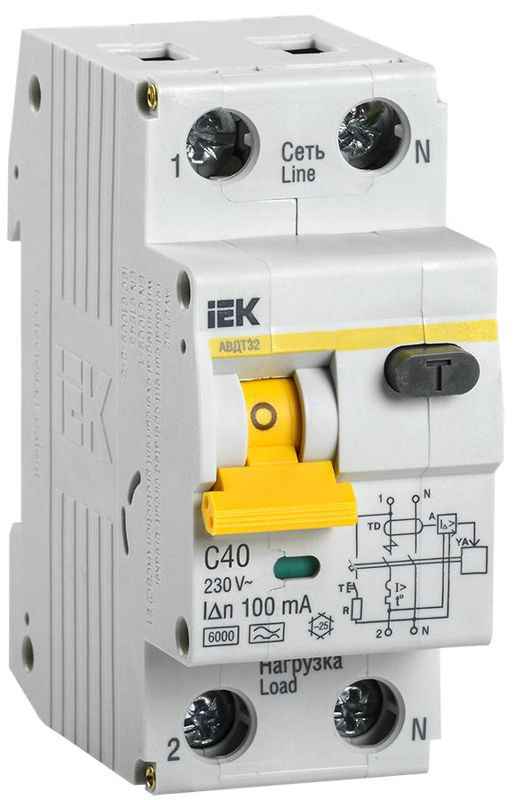 Выключатель автоматический дифференциального тока 2п (1P+N) C 40А 100мА тип A 6кА АВДТ-32 KARAT IEK MAD22-5-040-C-100