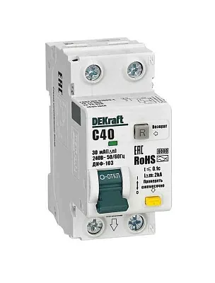 Выключатель автоматический дифференциального тока (АВДТ) 1P+N 40А 30мА A х-ка C ДИФ-103 6кА DEKraft 16351DEK
