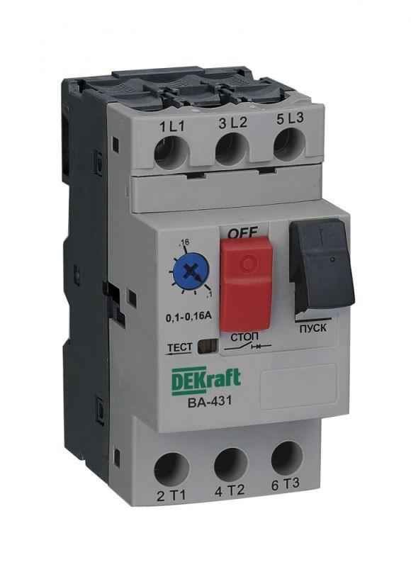 Автоматический выключатель серии ВА-431 DEKraft; диапазон уставок тока 2,5 - 4,0 А; ном. раб. напряжение 690 В; сечение подключаемых проводников 1,0 - 6,0 кв. мм. Корпус устройства изготовлен из самозатухающей пластмассы. Автоматические выключатели защиты двигателя серии ВА-431 DEKraft предназначены для управления и защиты трехфазных асинхронных электродвигателей от короткого замыкания, перегрузки и выпадения фазы. Дополнительно доступен ряд аксессуаров, облегчающих работу с устройством.
