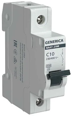 Выключатель автоматический модульный 1п C 10А 4.5кА ВА47-29М GENERICA MVA21-1-010-C-G