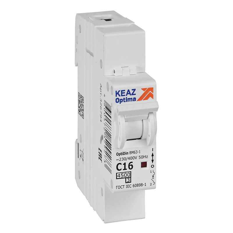 Выключатель автоматический модульный 1п C 16А 4.5кА OptiDin BM63-1C16-4.5-УХЛ3 КЭАЗ 326794