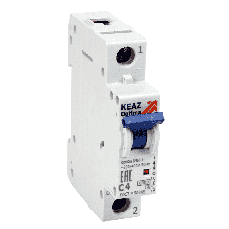 Модульный автоматический 1 полюсный выключатель переменного тока с предельной коммутационной способностью при переменном токе 6 кА на номинальный ток 32 А .